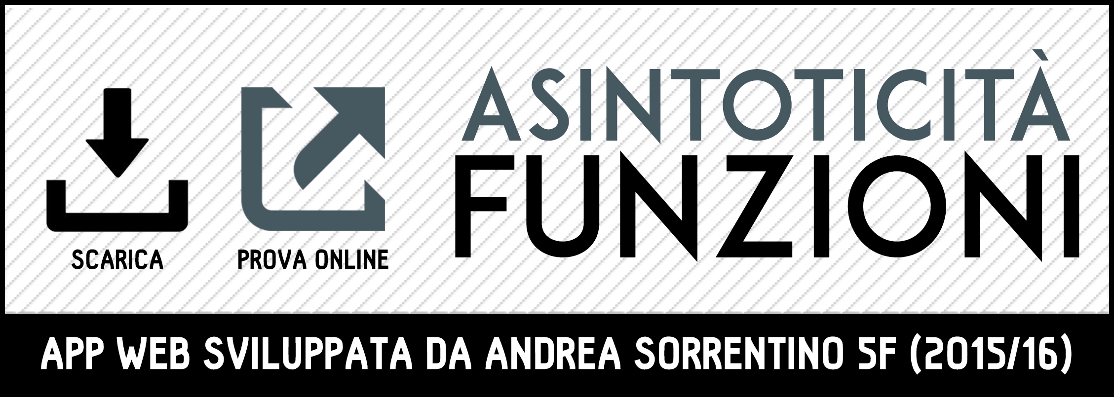 Asintoticità delle funzioni è un’applicazione web progettata e sviluppata dall’alunno Andrea Sorrentino di 5F al fine di dimostrare in maniera più interattiva l’asintoticità di alcune funzioni e coniche in analisi 1. L’applicazione è stata scritta in HTML5, PHP, CSS3 e Javascript, pertanto è possibile utilizzarla tramite un qualsiasi browser, anche se è consigliato l’uso di Chrome. L’applicazione oltre ad essere accessibile online, può anche essere utilizzata offline in assenza di connessione ad internet, scaricandola sul proprio computer. Una volta scaricato il file .zip, estrarre l’archivio e aprire il file “index.html” con un browser a propria scelta.