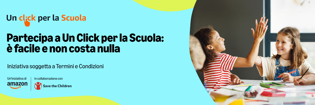 Un Click per la Scuola è un'iniziativa di Amazon.it. Amazon donerà l'1% del valore dei suoi acquisti idonei effettuati su wAmazon.it sotto forma di credito virtuale ad una scuola di tua scelta o ai progetti di contrasto alla povertà educativa di Save the Children.